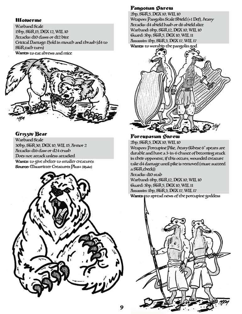 Bernpyle is updated quarterly, with new material. Stay tuned for more fun and exciting homebrew "mouserules". Bernpyle was inspired by many of the great folks over on the Mausritter Discord. The idea was birthed after reading all the amazing material from Tales from Moonshore, a Mausritter homebrew campaign setting, created by a couple people from the discord. The idea of a zine came from Thistle Kingdom. And the layout was inspired by Lake of the Pirat King. These are also great sources for your campaigns.