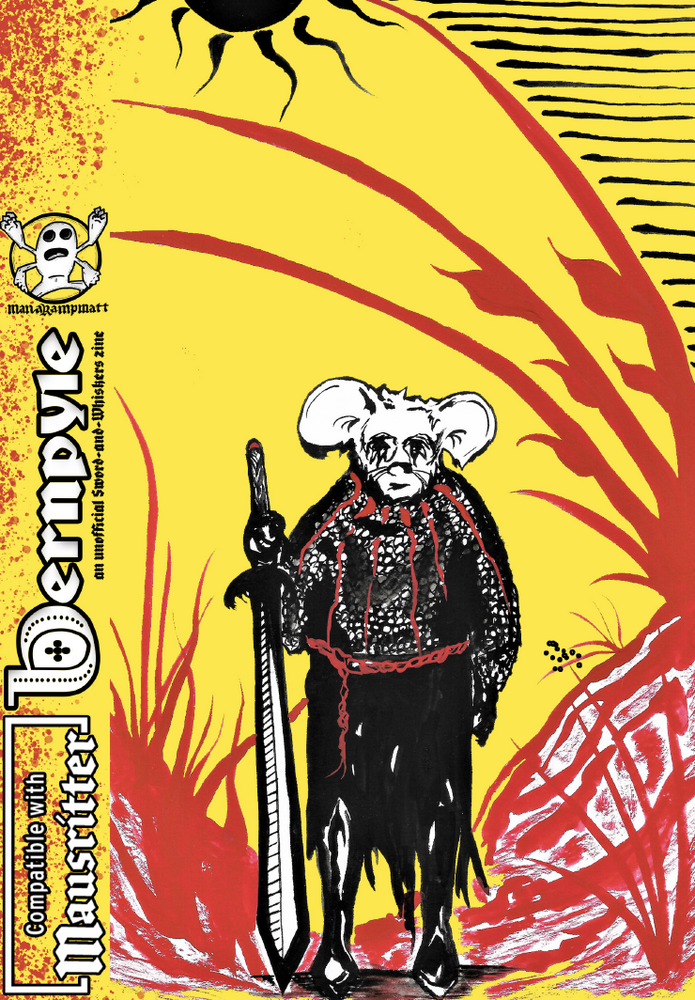 Bernplyle #4 is a heavy-metal fanzine for Mausritter. It is inspired by MÖRK BORG but uses the base rules found in Mausritter by Losing Games. In this issue, you will find content by ManaRampMatt as well as the amazing Greyson Yandt. This zine also features an adventure by King Qyote and the greatest art around by, Perplexing Ruins. Get ready to adventure the Wastelands in this month's issue of Bernpyle!