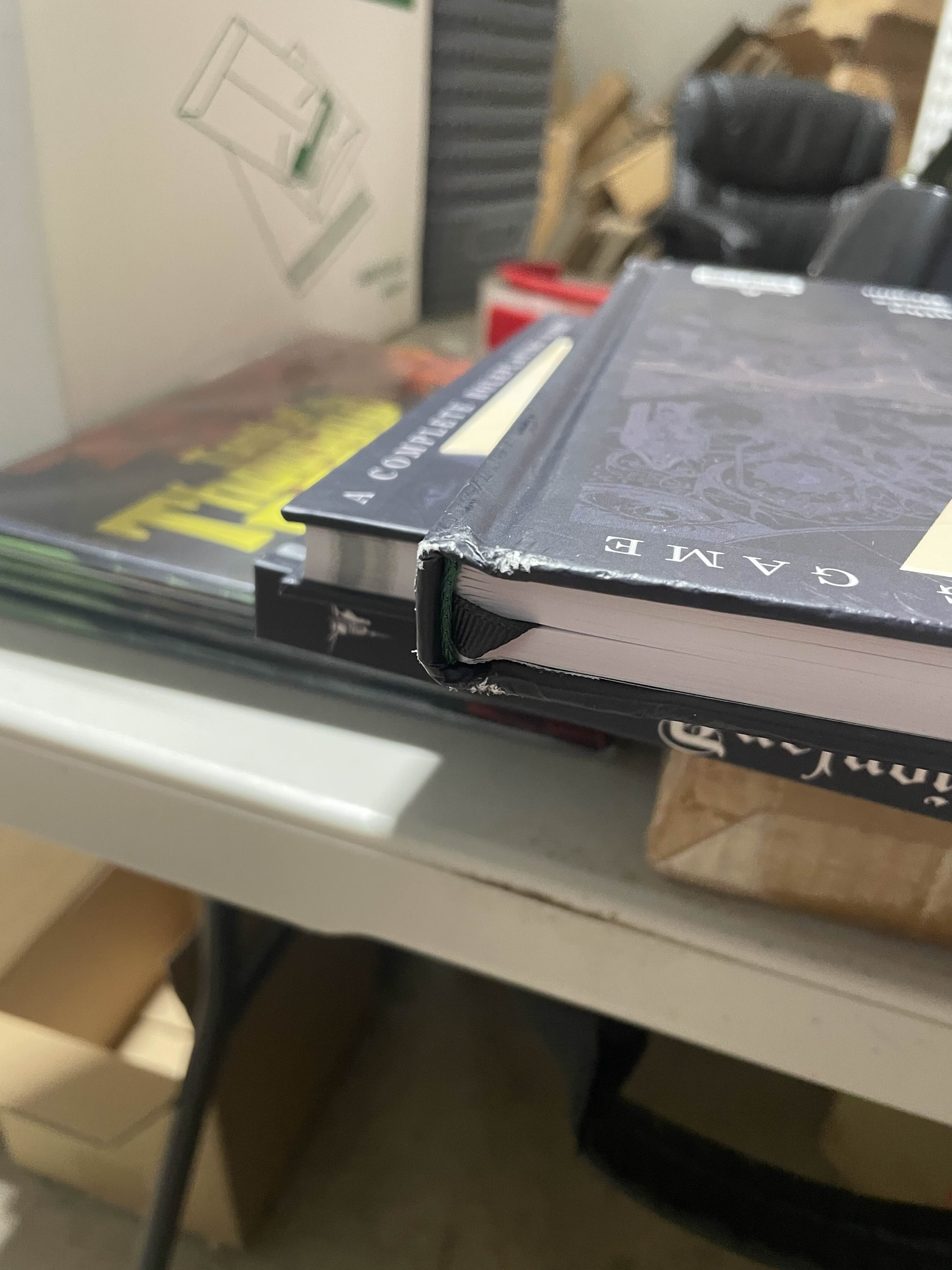 Damage varies, but includes wearing on corners, visible cover imperfections, and damaged or disconnected book ribbons. While we believe all books we send are usable and the books are durable, we cannot accept returns or refunds for these books.
