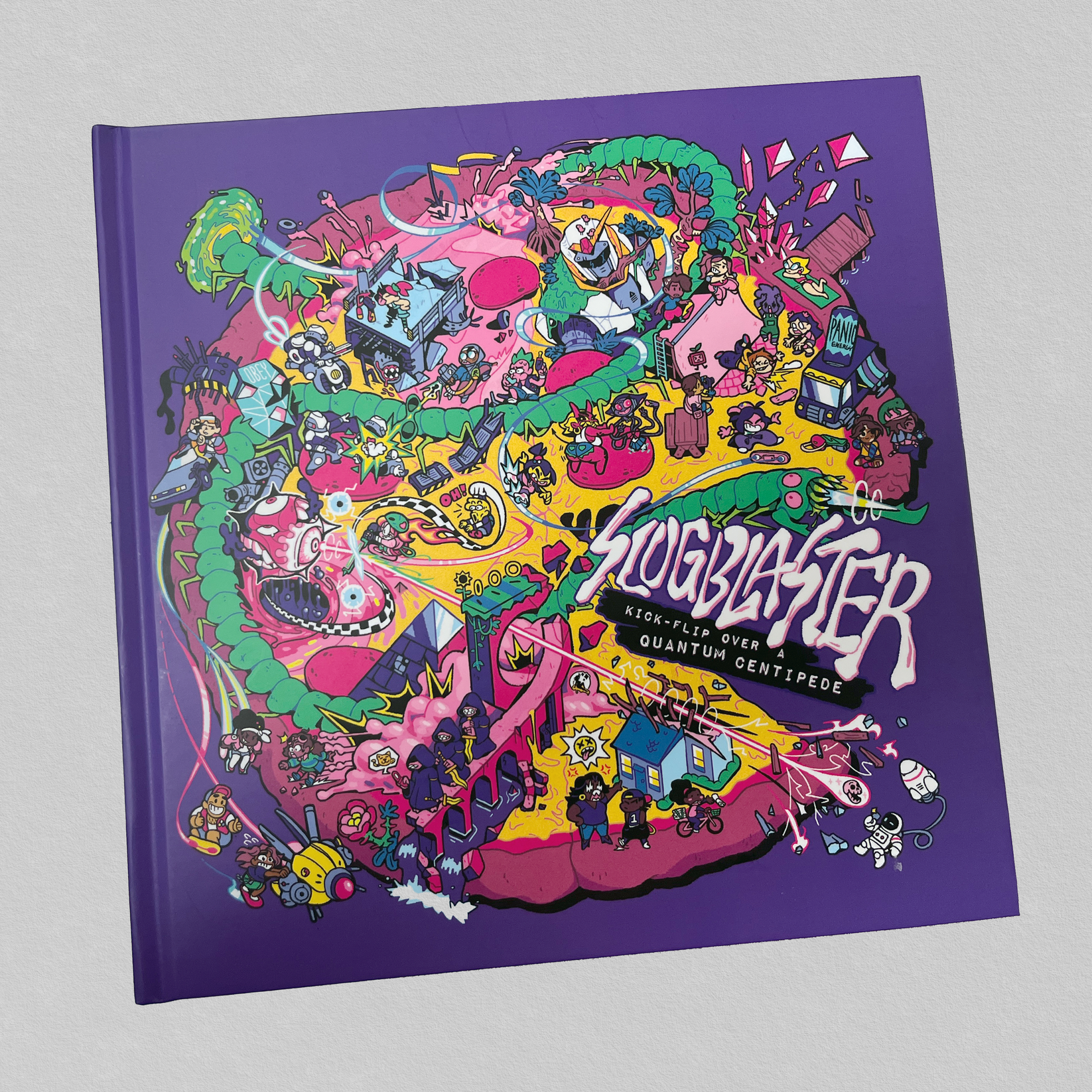 In the small town of Hillview, teenage hoverboarders sneak into other dimensions to explore, film tricks, go viral, and get away from the problems at home. It’s dangerous. It’s stupid. It’s got parent groups in a panic. And it’s the coolest thing ever. This is Slugblaster. A tabletop rpg about teenagehood, giant bugs, circuit-bent rayguns, and trying to be cool. The Game of the Year Edition includes expanded solo rules, two play surfaces, a set of dice, enamel pin, original soundtrack, stickers, and GM Screen built right into the box.